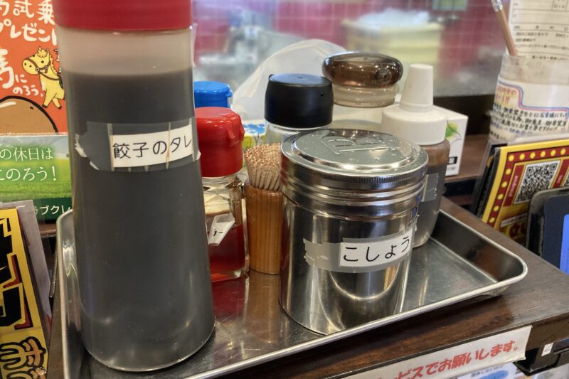 コショウ、餃子のタレ、塩