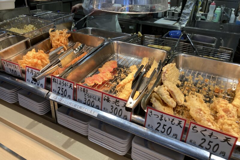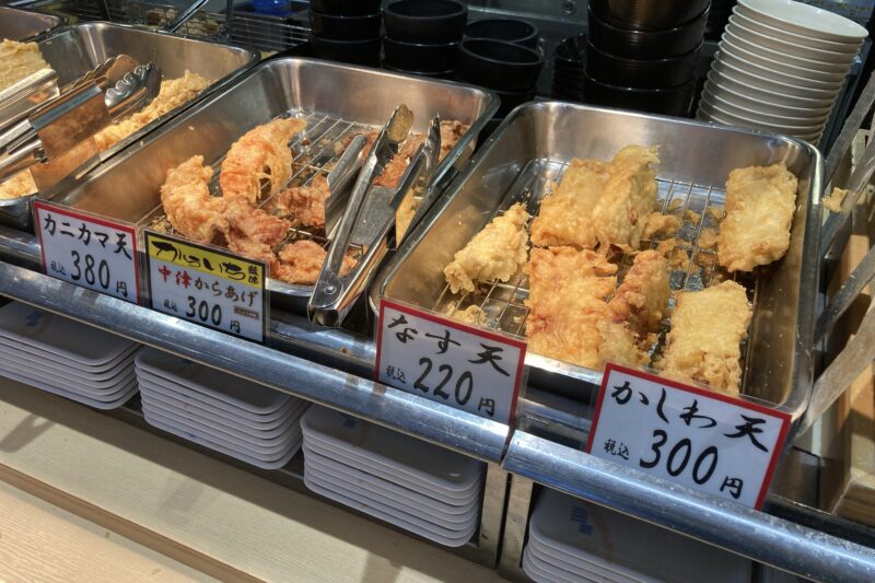 セルフで天ぷらを取ってこ♪